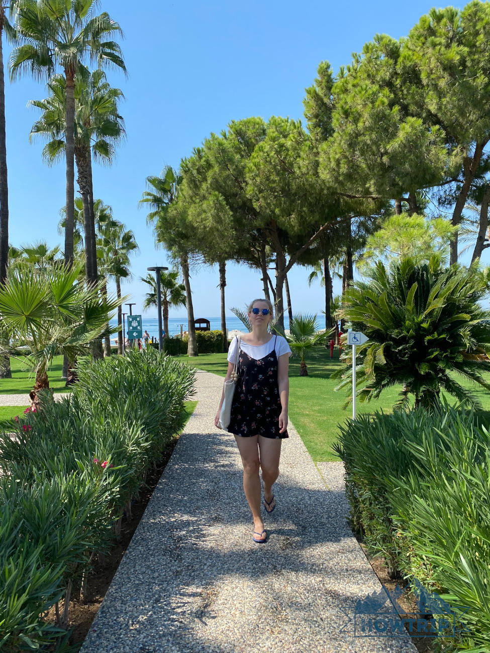 Территория отеля буквально утопает в зелени благодаря плодовым деревьям, соснам и эвкалиптовым рощам. Мелкогалечный пляж с большим количеством шезлонгов и отдельно стоящих шатров, а также пологий вход в воду идеально подходят для пляжного отдыха. Ассортимент ресторанов отеля приятно удивит даже самого придирчивого гурмана: средиземноморские или диетические блюда, легендарный французский Луковый суп или A La Carte с экзотическими вкусами блюд дальневосточной кухни. Собственная школа серфинга, spa-комплекс, 4 футбольных поля, фитнес-центр и “вишенка на торте” – гольф клуб с 3 полями, на которых проходят европейские турниры.