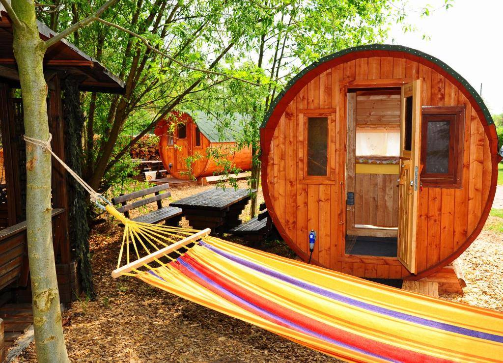 Гостиница с бочками от соленых огурцов