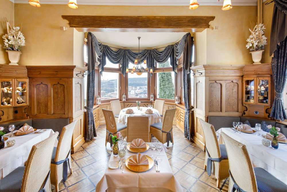 В ресторане Steinburgs традиции сочетаются с легким средиземноморским колоритом, как и в номерах Country Manor, и каждый вечер вы можете наслаждаться постоянно меняющимся меню Gourmet Set Menu с восхитительным названием.