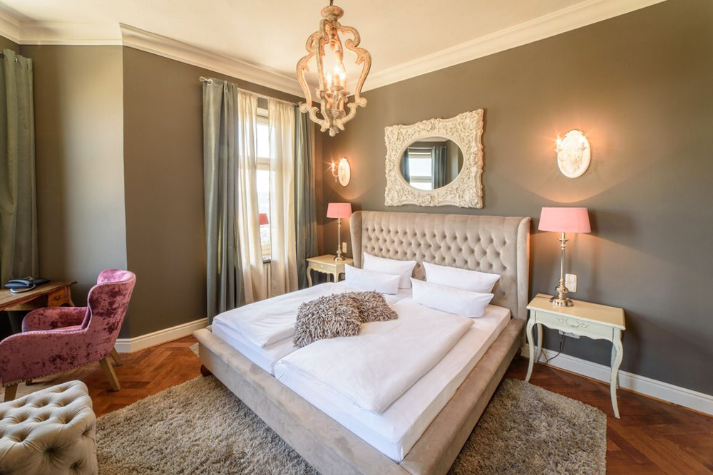 Элегантный замок отель 1920-х годов с королевской мебелью. Гостиничные номера в оформлены в уютной простоте на рубеже веков, независимо от выбранной категории, но оборудованы по последнему слову техники. Роскошные люстры и высококачественные ковры, которые выглядят как настенные росписи, являются умелым данью уважения дворцу Карлсруэ.