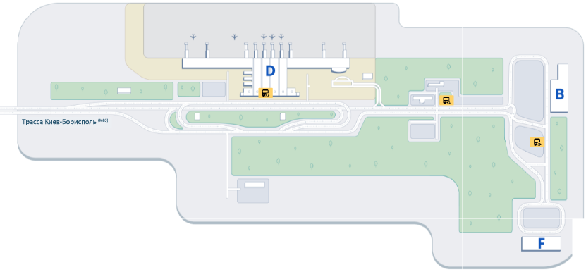 Аэропорт «Борисполь» на карте Киева расположен в 30 км от города, добраться можно на такси или общественным транспортом.