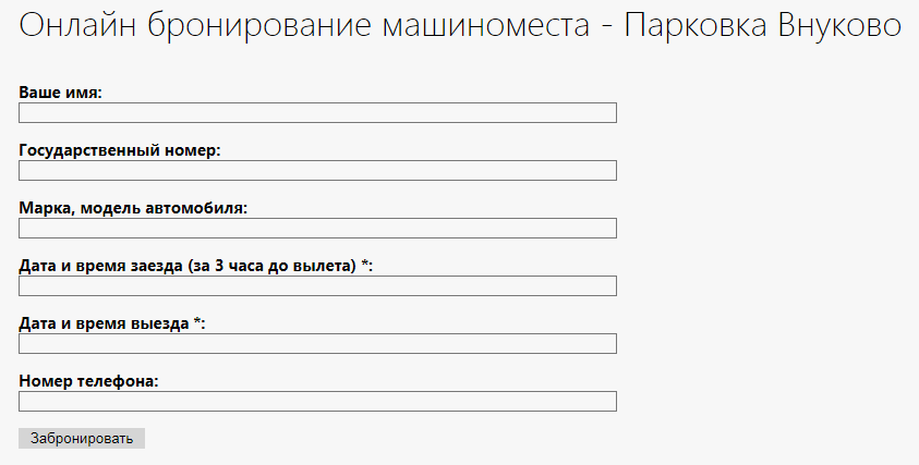 Список парковок в аэропорту Внуково