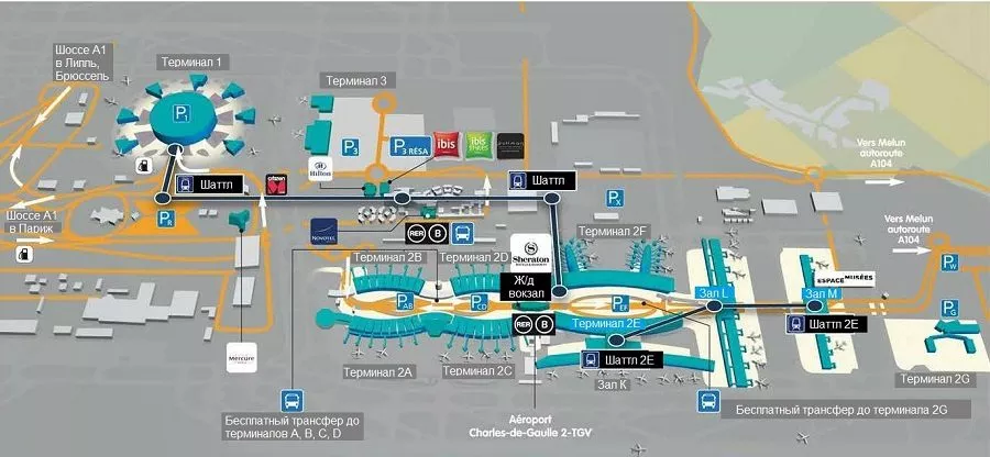 Футуристичный комплекс неподготовленному новичку может показаться слишком запутанным. Чтобы не заблудиться, схему терминалов и расположение важных объектов на территории бывалые путешественники советуют изучить заблаговременно. Хотя делать подобное не обязательно – как и везде, в парижском аэропорту имеются планы этажей, указатели и стойки информации.