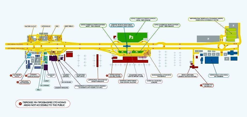 Афинский аэропорт, который ежегодно принимает более 16 миллионов пассажиров, постоянно увеличивает и развивает удобные сервисы для туристов. Сейчас он разделён на два терминала, соединённых переходами. Основной терминал принимает рейсы из стран Шенгена и многих зарубежных государств. Дополнительный терминал преимущественно специализируется на лоукостерах, азиатских и американских рейсах.
