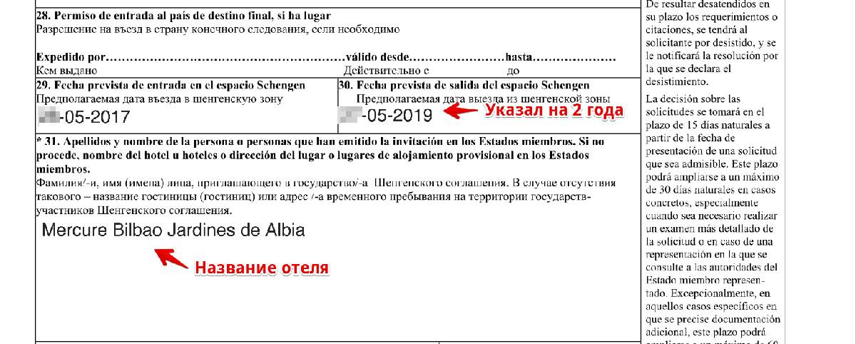 - п.п.29-30 – даты въезда и выезда из Шенгена.