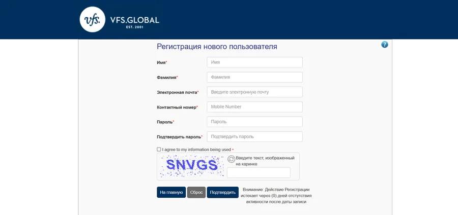 Анкета для подачи визы заполняется онлайн через портал VFS Global. Подробнее о том, как это сделать, мы расскажем далее.