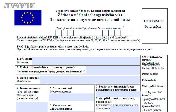 Анкета на чешскую визу