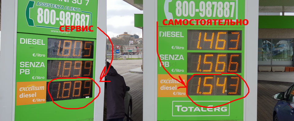 Смотрите инструкцию: как заправляться на автоматических заправках в Италии
