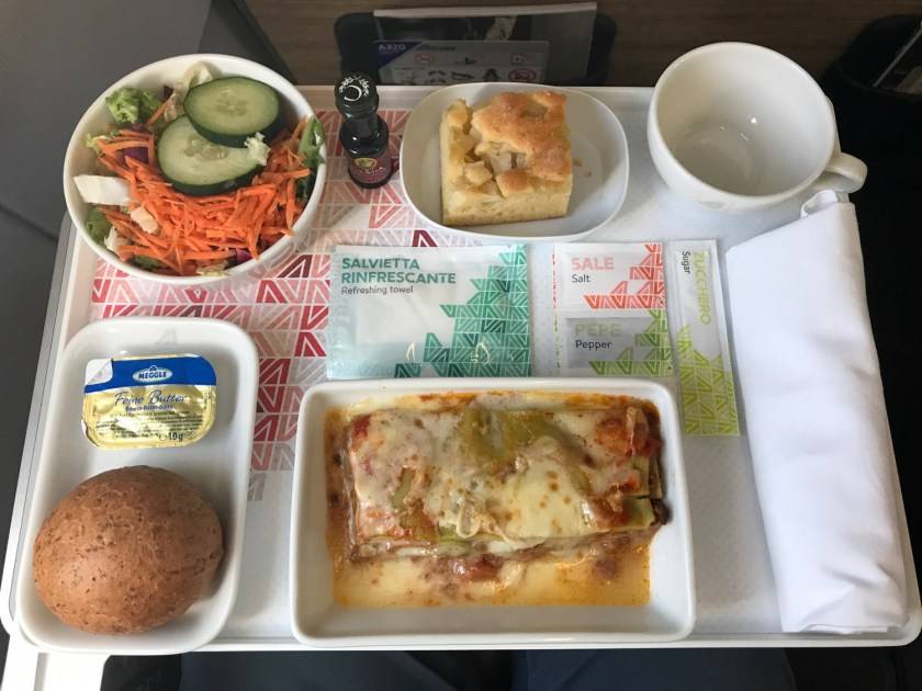 Пример обеда на среднемагистральном рейсе в бизнес-классе Alitalia