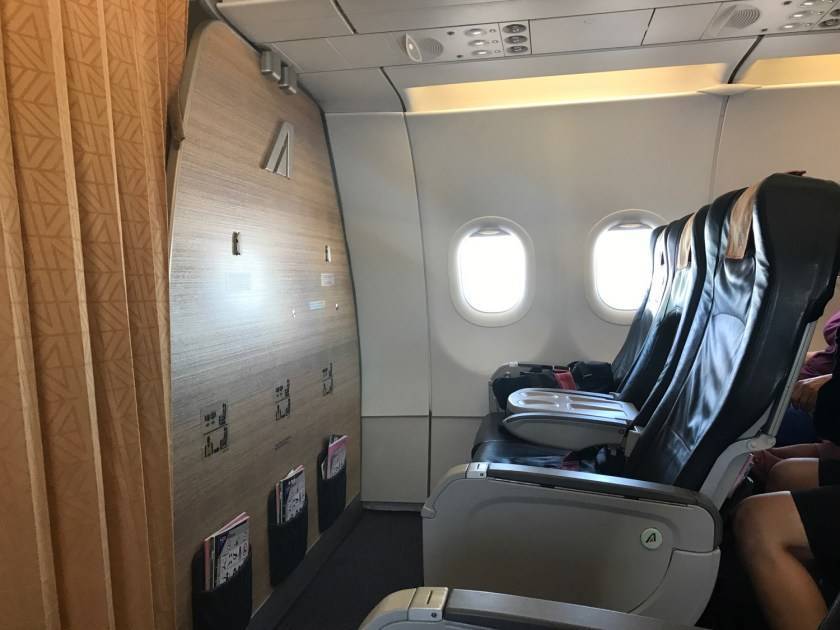 На Airbus A319, A320, A321 конфигурация бизнес-салона 3х3, но среднее сиденье заблокировано