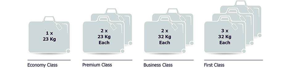 - Дополнительно каждый путешественник имеет возможность провезти определенное количество багажа бесплатно. Этот груз будет зарегистрирован отдельно и отправлен в специальное отделение. Рекомендуется предварительно узнать, сколько может весить чемодан для багажа, поскольку нормы зависят от класса обслуживания. Стандартный тариф ограничивается 23 кг, за вес свыше этого придется доплачивать. Клиент бизнес-класса имеет право провозить до 32 кг.