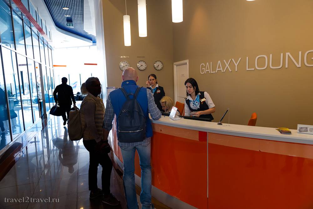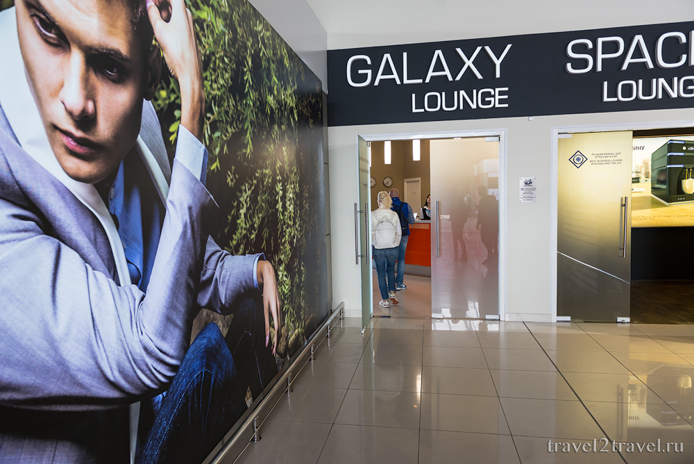 «Галактика Lounge». Большие панорамные окна с видом на стартовую площадку и две зоны: одна небольшая для работы, другая для отдыха пассажиров. Есть игровая комната для детей. Обслуживаются люди, путешествующие на самолете по международным направлениям. После паспортной регистрации в зале ожидания обслуживаются обладатели Priority Pass, участники программ лояльности Аэрофлота и альянса Sky Team, пассажиры с билетами бизнес и эконом класса с оплаченным проживанием.