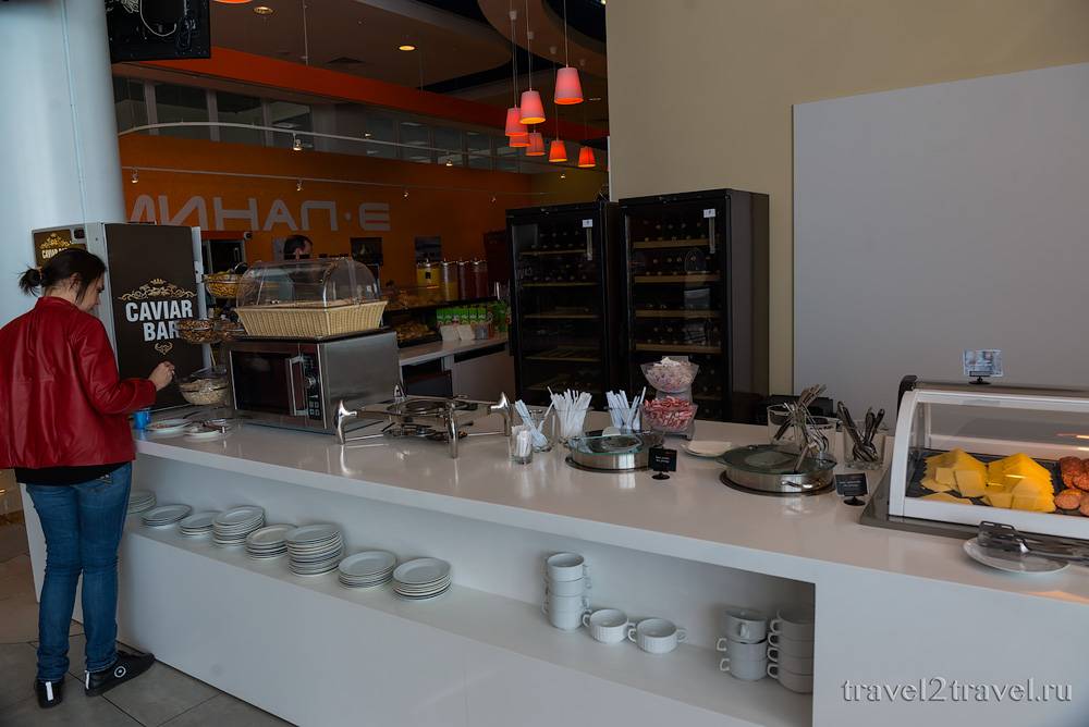 После этого стало ясно назначение микроволновой печи, которую до этого мы никогда не видели в бизнес-лаунжах. На ней посетители самостоятельно могут разогреть холодную еду.)