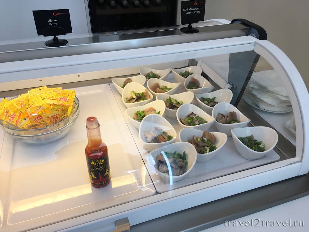 Очень удивила холодная закуска в виде филе селедки. Просто мечта, селедочка с лучком на завтрак! Сдобрил тобаско, умял тарелочку и на самолет.))