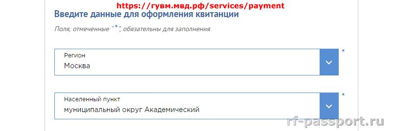 По указанной ссылке находится раздел, в котором заполнить квитанцию очень просто. Сначала производится выбор действия госоргана, за которое планируется совершить оплату, и статус плательщика.