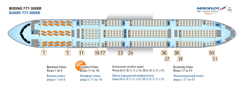 Боинг 777-300ER: схема салона Аэрофлот, лучшие места