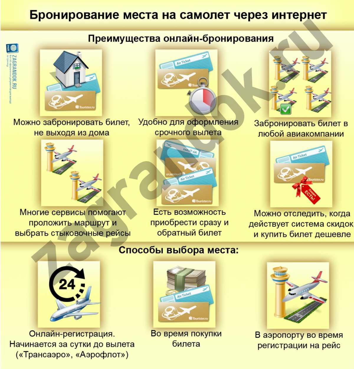 У предварительного бронирования мест в самолете через интернет есть следующие преимущества: