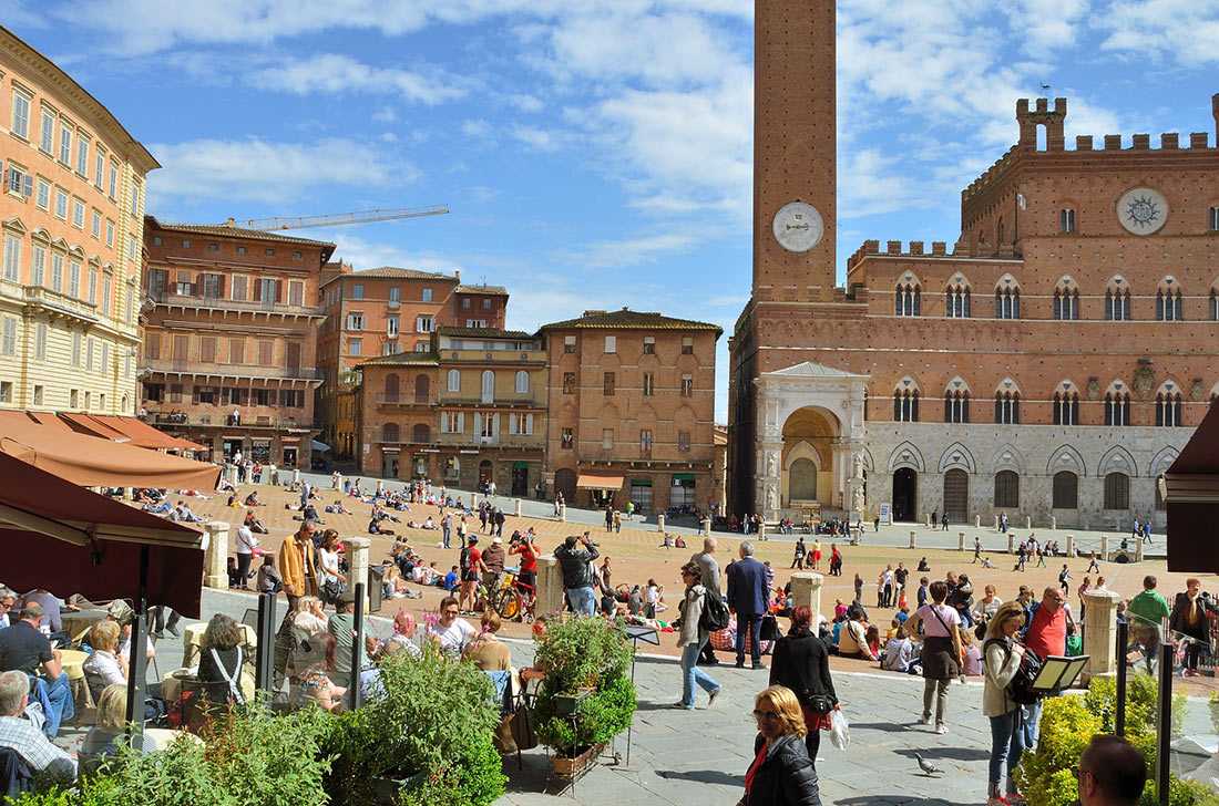 Пьяцца-дель-Кампо, одна из самых больших средневековых городских площадей Европы, является основным общественным пространством исторического центра Сиены (Тоскана, Италия). Она известна во всем мире своей красотой и архитектурной целостностью. Палаццо Пубблико и его знаменитая башня, а также дома, принадлежащие самым богатым сиенским семьям, окружают площадь. Два раза в год здесь проводится Сиенское Палио — традиционные скачки. На площадь наносят толстый слой земли и наездники, управляющие неосёдланными лошадьми, делают по ней три круга. Общая длина дистанции 1 километр, а длятся бега обычно не более 90 секунд.