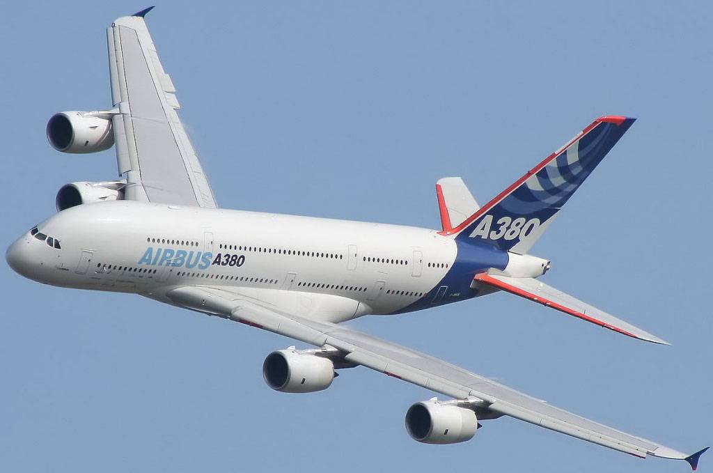 — широкофюзеляжный двухпалубный четырёхдвигательный реактивный пассажирский самолёт, созданный концерном Airbus S.A.S. (ранее Airbus Industrie) — крупнейший серийный авиалайнер в мире (высота 24,08 метра, длина 72,75 метра, размах крыла 79,75 метра). Вместимость — 525 пассажиров в салоне трёх классов, 853 пассажира в одноклассовой конфигурации. Может совершать беспосадочные перелёты на расстояние до 15 400 км.
