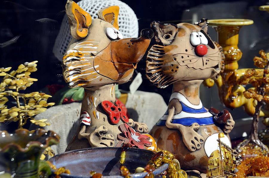 Среди сувениров лидируют изделия из янтаря. Это могут быть простые небольшие фигурки или статуэтки, мелкие украшения или роскошные колье. Однако, будьте внимательны, как и оригинальных изделий, так и искусных имитаций здесь очень много. Если вы готовы заплатить не менее 30 €, то наградой будет подлинный янтарь, а вот 3-5 € стоить может только подделка. Настоящий же шедевр обойдется от 200 €.