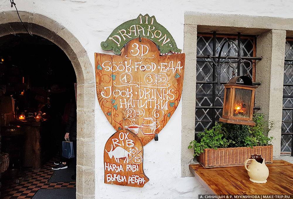 Вообще цены на еду не радуют, особенно в Старом Таллине. Если заглянете в Old Hansa, то увидите, что самое дешевое мясное блюдо стоит 14 евро. Пиво 0,5 л — от 6 евро (грустно вспоминается Прага с пивом за 1 евро). Или возьмем кафе Reval: основные блюда от 11 евро, десерты — от 2,20 до 8 евро, салаты от 5,5 евро.