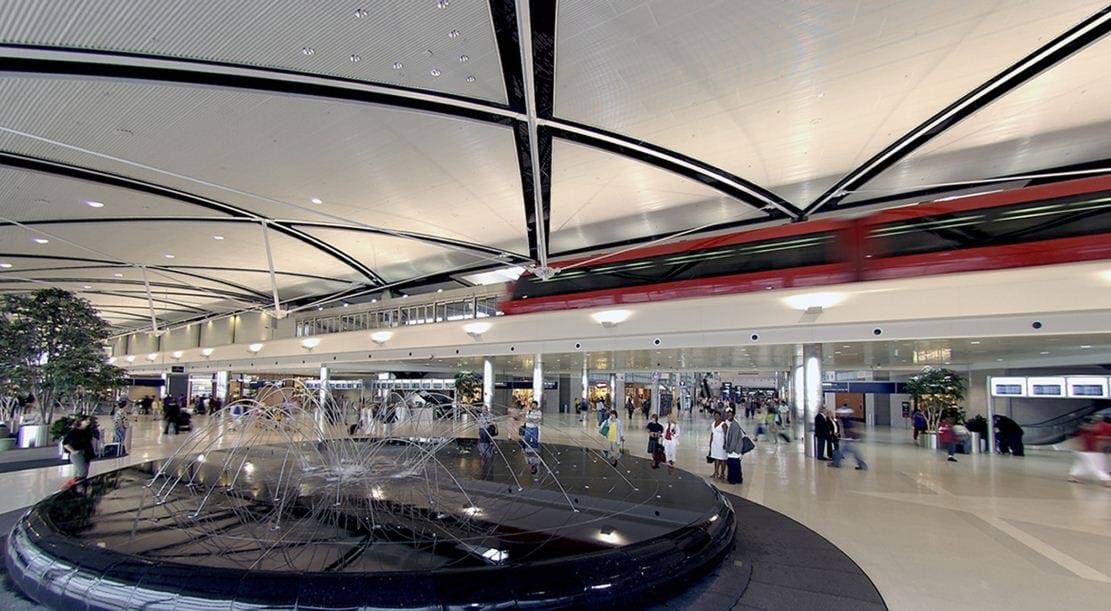 Сам по себе терминал аэропорта настолько велик, что для доставки пассажиров к нужной точке используют внутреннее метро. Небольшие поезда с 2 вагонами каждый подвозят пассажиров к искомому месту. Расписание вывешено повсюду, а во избежание несчастных случаев пути проложены по верху, где люди не ходят.