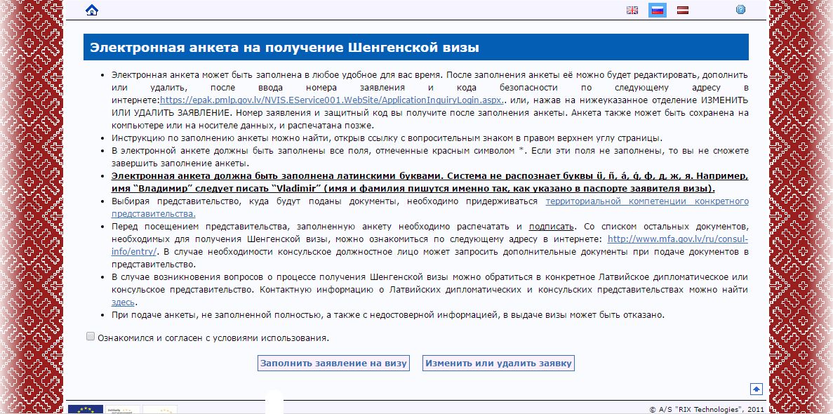С 2012 года анкеты на визу в Латвию подаются в электронном виде.
