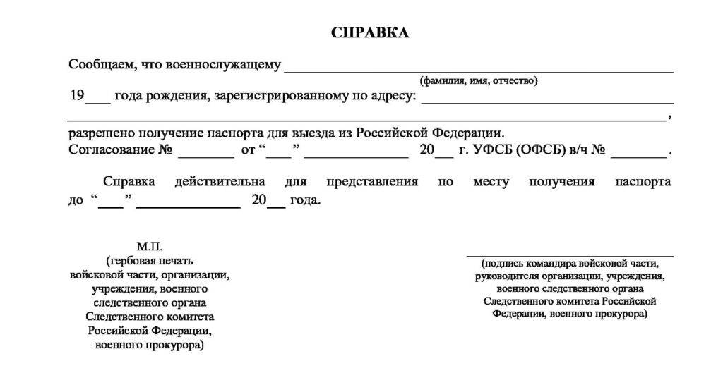 - Письменное разрешение от командования для военнослужащих (за исключением срочной службы);