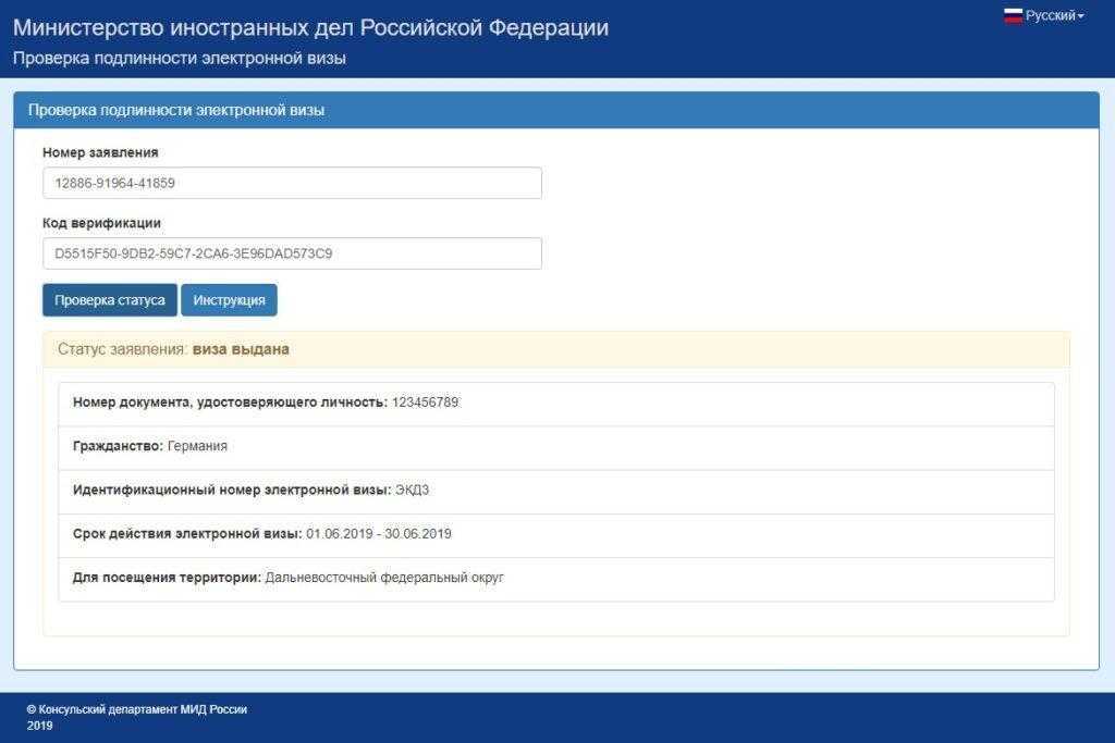 Для проверки действительности электронной визы создан специальный сервис. Если гражданин показывает распечатанный бланк уведомления, то достаточно считать штрихкод, который имеется на документе. Вы попадете на сайт проверки подлинности визы, при этом все необходимые данные для проверки уже будут заполнены. Останется только нажать кнопку «Проверка статуса».