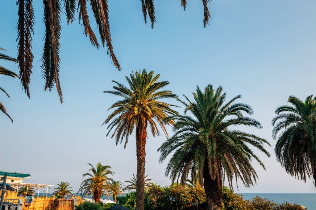 Тропические пальмы пляжа Чунмун на острове Чеджудо, Южная Корея