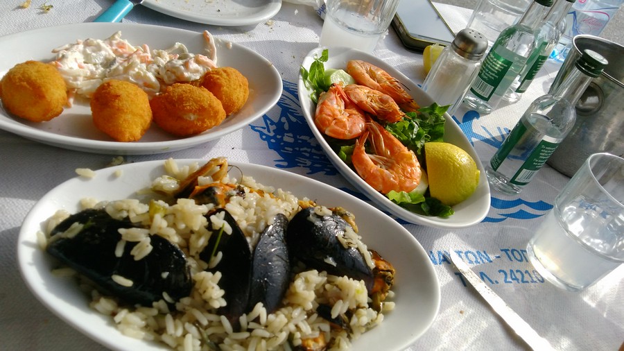 - Очень популярен фаст-фуд: аналог шаурмы в греческом варианте и картофель фри. Стоит отметить, что фаст-фуд отличается отменным качеством. Имеется аналог шведского стола – множество рыбных и мясных блюд с разными соусами.