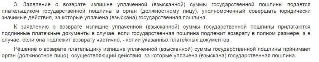 В официальном письме российского министерства финансов говорится, что сроки оформления ходатайства о возвращении переплаты пошлины составляют 3 года.