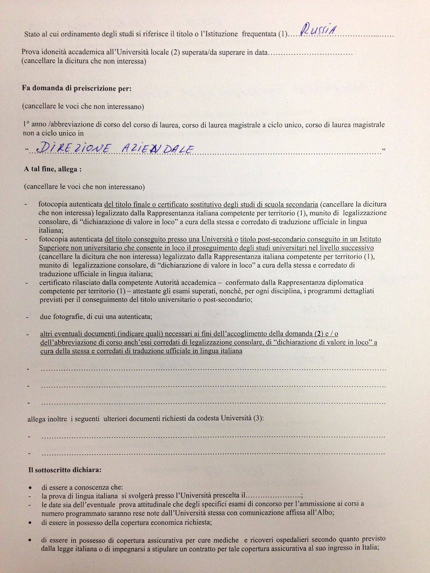 - Заявление, с просьбой о приеме в итальянское подданство.