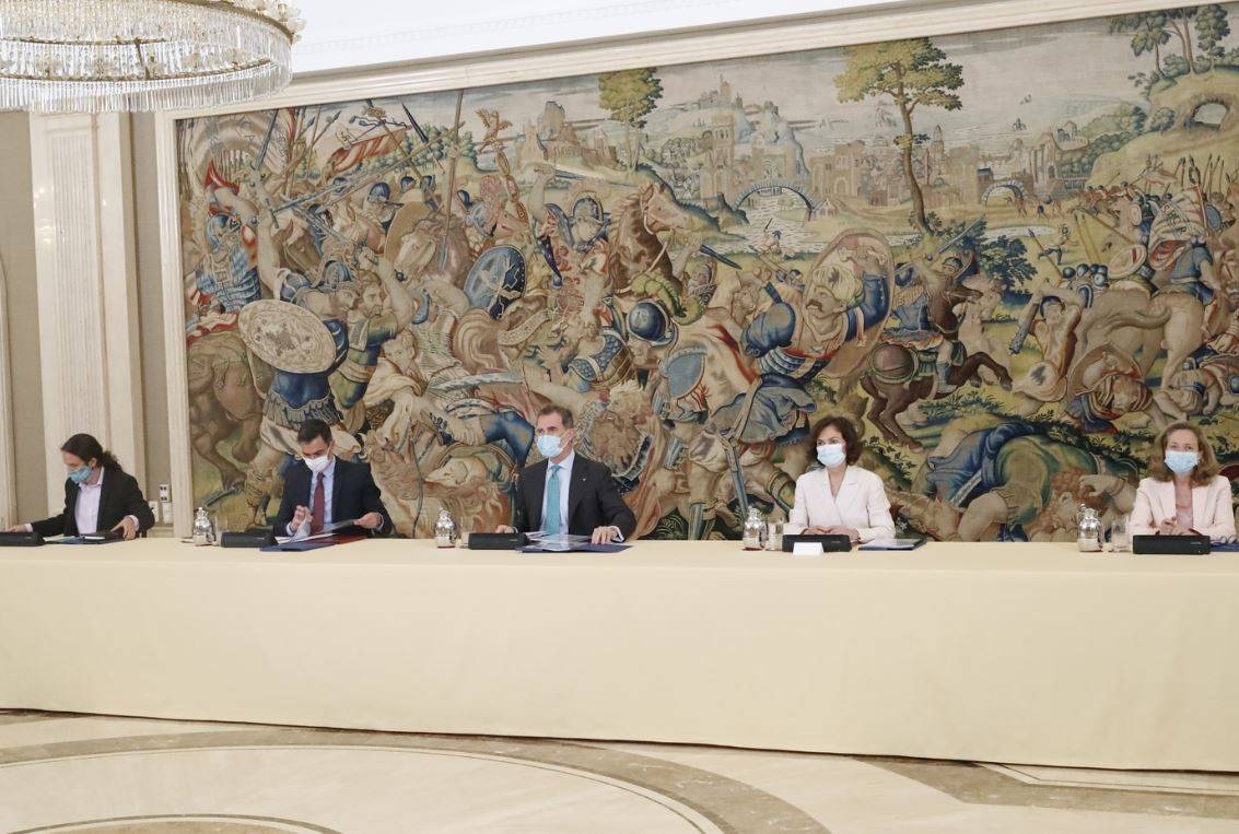 Премьер-министр Испании, Педро Санчес, вместе с Его Величеством королем Фелипе VI во время заседания Совета национальной безопасности. Фото: La Moncloa.