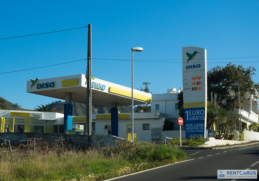 Цены на бензин на Тенерифе в среднем дешевле, чем в остальной Испании: около 0,9€ (95), 1,1€ (98), дизель 0,8€.