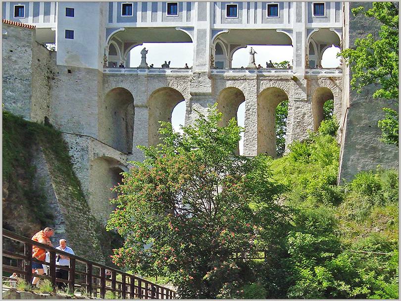 Крумловский замок – значительная часть города. Это второй по величине, после Пражского Града, замок Чехии. Строился он одновременной с городом, или наоборот… На сегодняшний день он включает в себя 40 зданий и дворцов, замечательный сад с фонтаном, аллеями, клумбами и мост через ров.