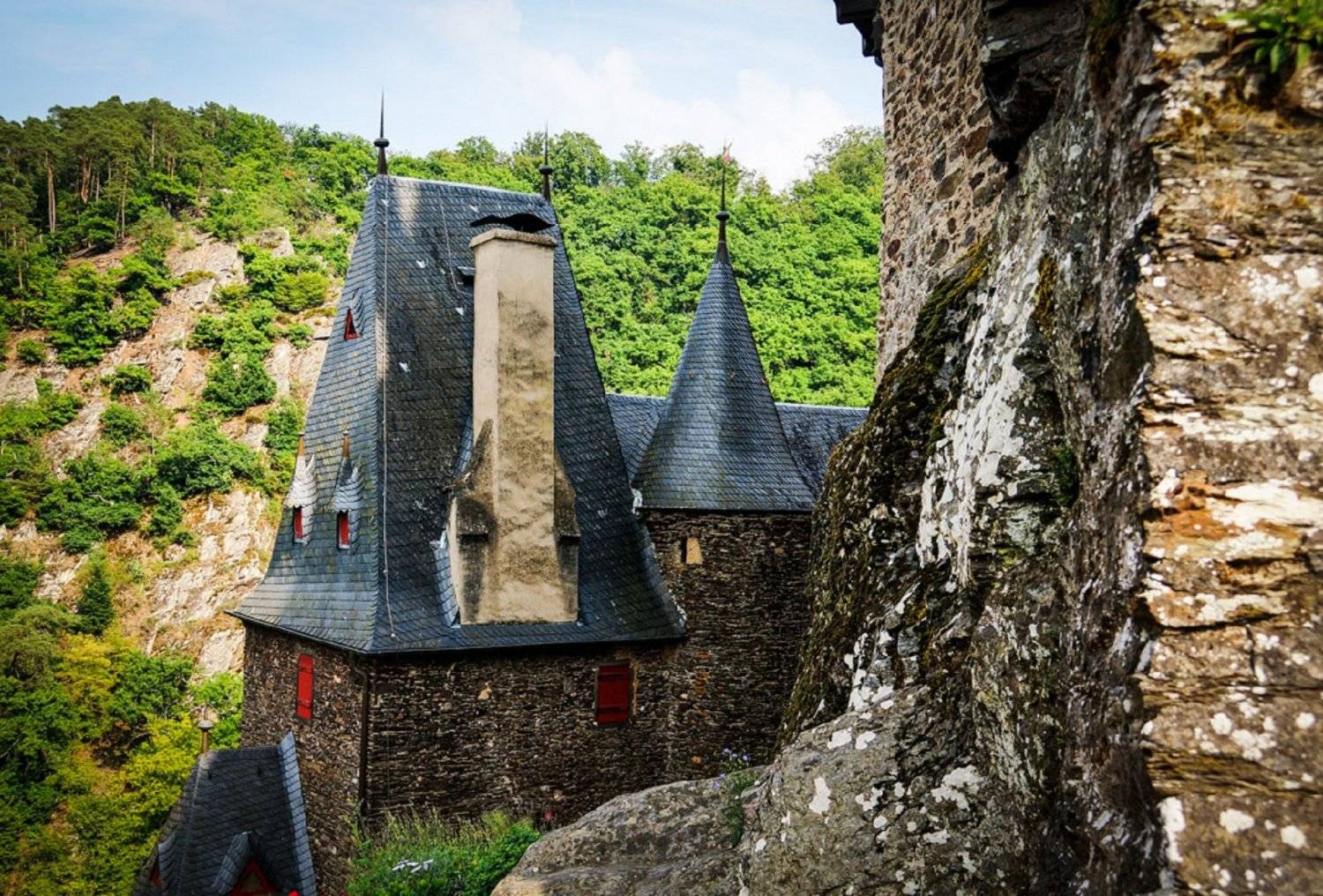 Замок Эльц был построен в 12 столетии на отвесной скале, которую почти вокруг огибает речушка Эльцбах, приток реки Мозель