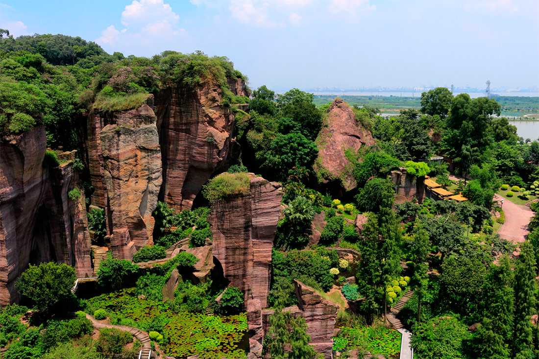 Это невероятно красивое место, в котором стоит побывать, если даже вы приехали в Гуанчжоу всего на пару часов. Оно находится на расстоянии 20 км от центральной части города. Много столетий назад их называли каменными головами львов. Здесь можно прогуляться по пешеходным тропинкам самостоятельно или заказать экскурсию. В любом случае вы увидите главный символ маленькой провинции – пагоду Лотоса. Она была построена императором в 1612 году. Также вы сможете увидеть руины, которые остались от древнего города. Построил его император Канси в конце 17 века. Также здесь туристы могут увидеть наиболее внушительную статую Будды, которую возвели в 1994 году. Она полностью сделана из бронзы. Ее вес составляет 120 тонн, а высота – 40 метров. Разумеется, на территории этого замечательного парка есть огромные водные пространства, густо покрытые розовыми, белыми, оранжевыми лотосами.