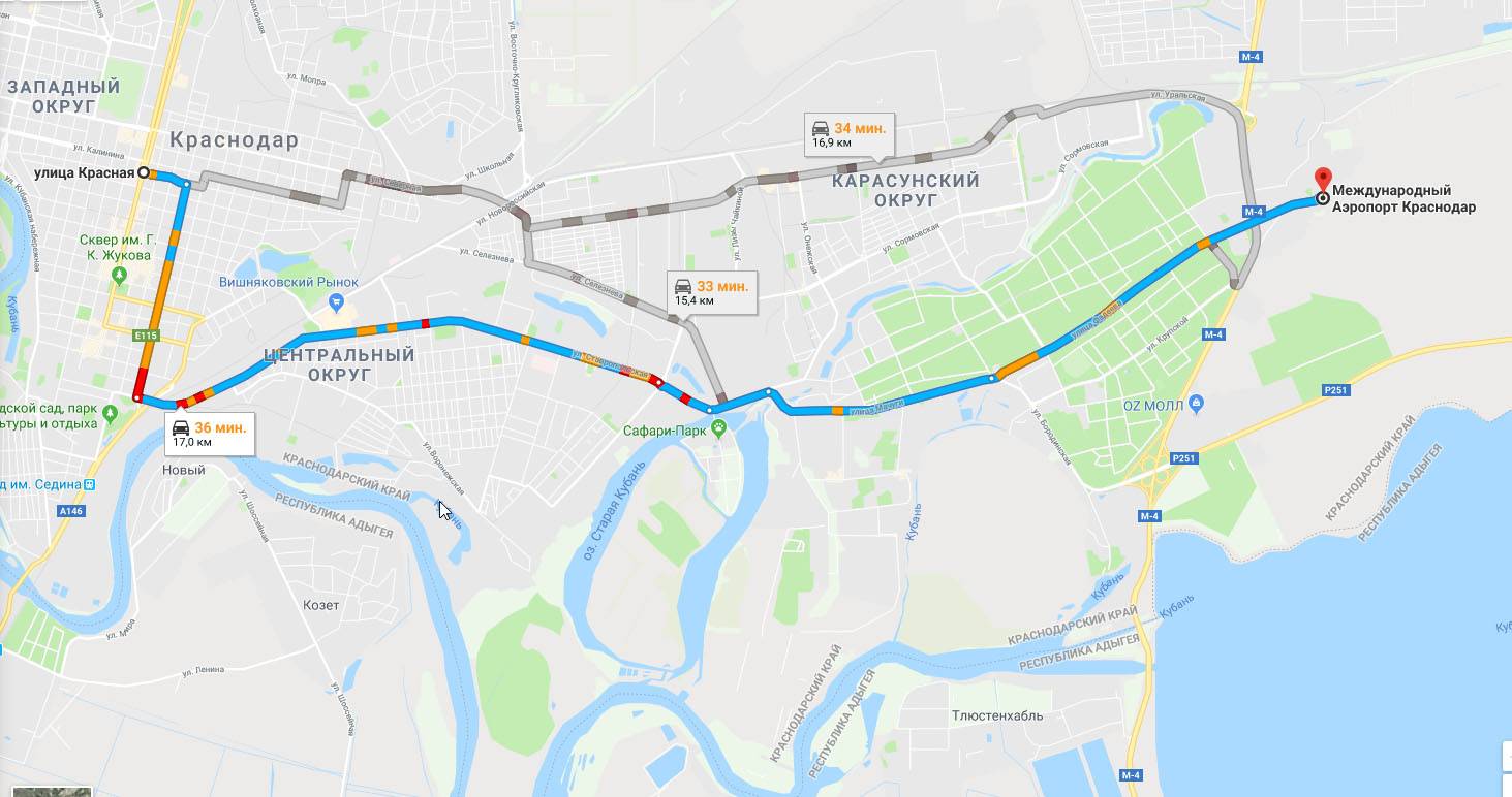 Расстояние от аэропорта Краснодара до автовокзала Краснодар 1.