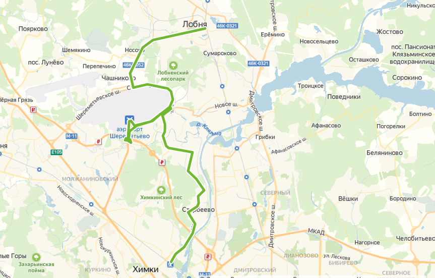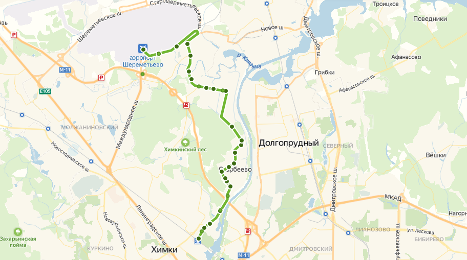 Маршрут: Ж/д станция Химки — терминал F аэропорта Шереметьево (Шереметьево-2).