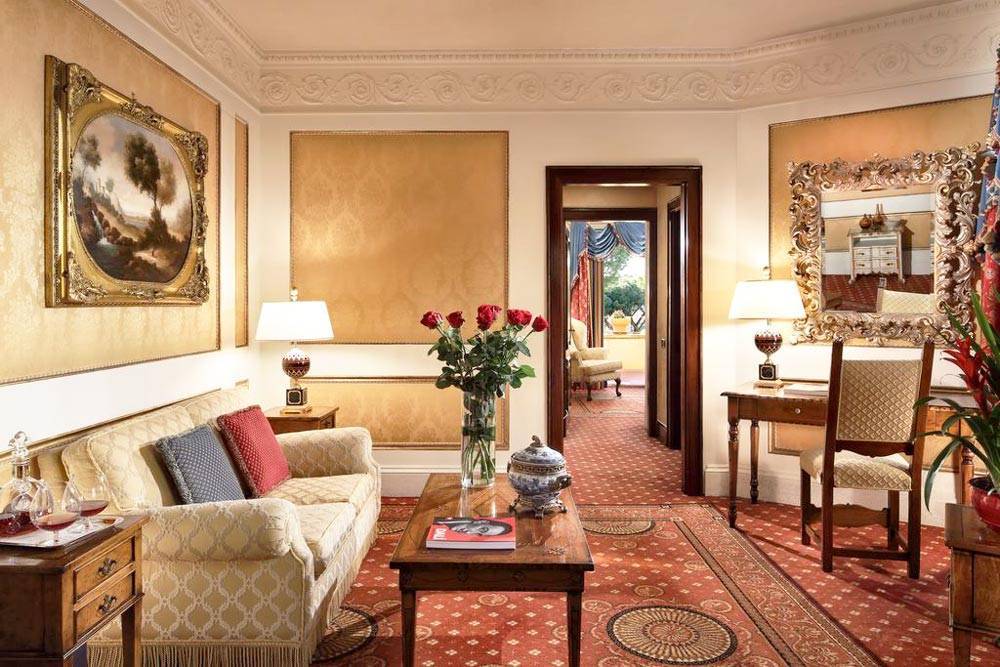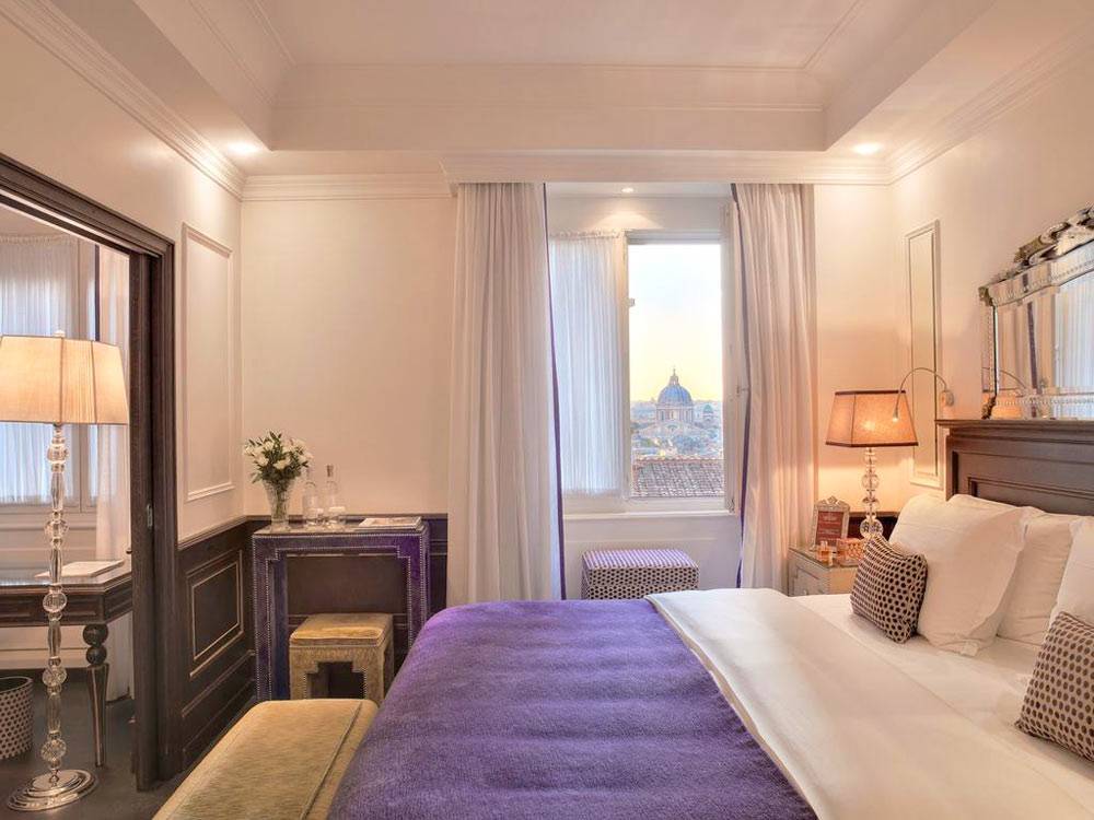 Отель Hassler Roma известен тем, что расположен на вершине Испанской лестницы. К услугам гостей 3 ресторана открытого и закрытого типы, номера люкс, турецкая баня, сауна, фитнес-зал, тренажерный зал. Средний размер номера в отеле составляет 50-65 кв.м. стоит отметить, что в отеле есть только одно- и двухместные номера. Стоимость размещения в номерах зависит от сезона и длительности заезда. Цена варьируется в пределах: от 3000 до 13600 долларов.