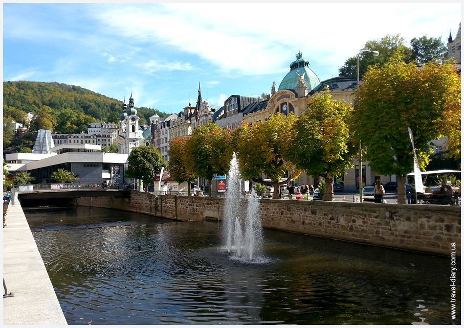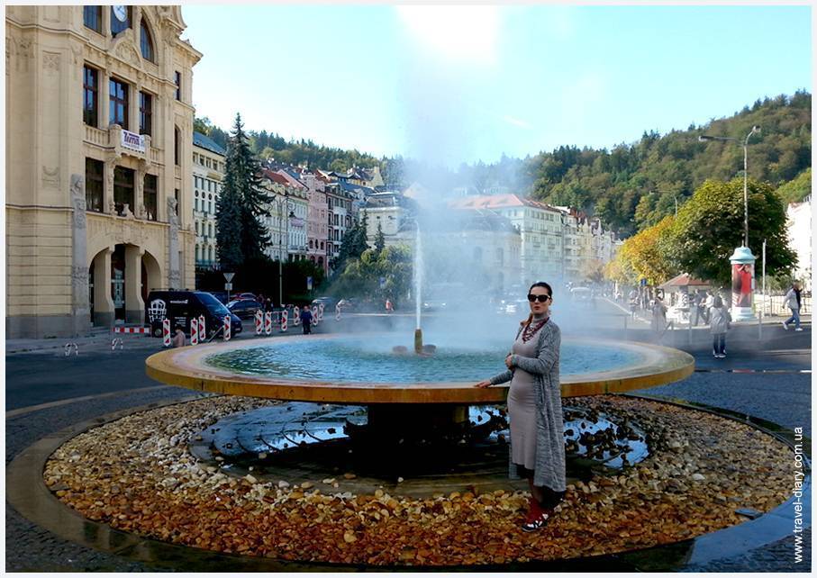 Не отягощенные багажом туристы буквально через 5-10 минут по прибытии уже будут стоять на Becherplatz возле музея Бехеровки. Это и есть начальная точка, с которой все отправляются на экскурсию по городу. Улица Масарика ведет в направлении центра курорта и завершается стелой с фонтаном: