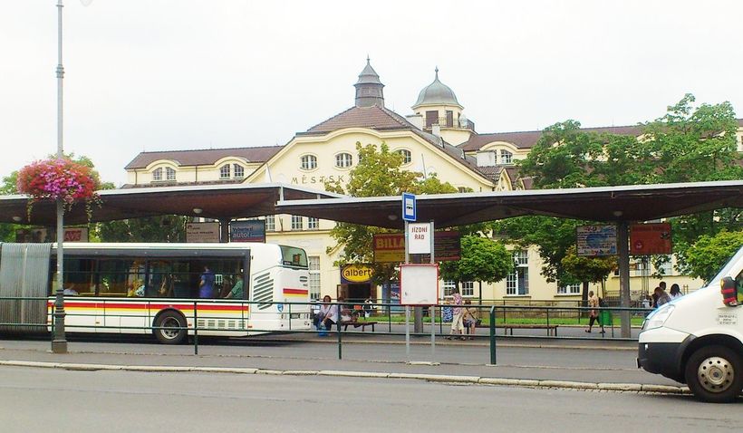 Если вы приехали в город на рейсовом автобусе, то можете выйти на остановке «Tržnice» («Жнице») – через неё проходят все городские маршруты, которые доставят вас до нужной точки.