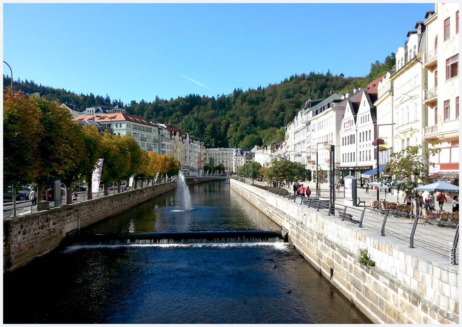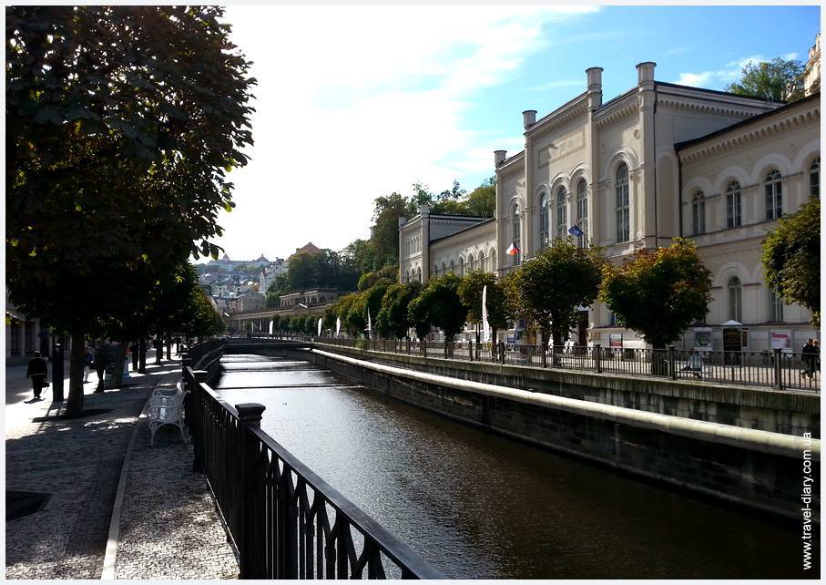 После музея Яна Бехера мы повернули направо к реке Тепла. Удивительное зрелище, когда город пронизывает водоем, тем более с уникальными свойствами.
