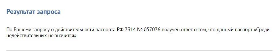 Ответ сервиса: всё ОК, паспорт среди недействительных не значится: