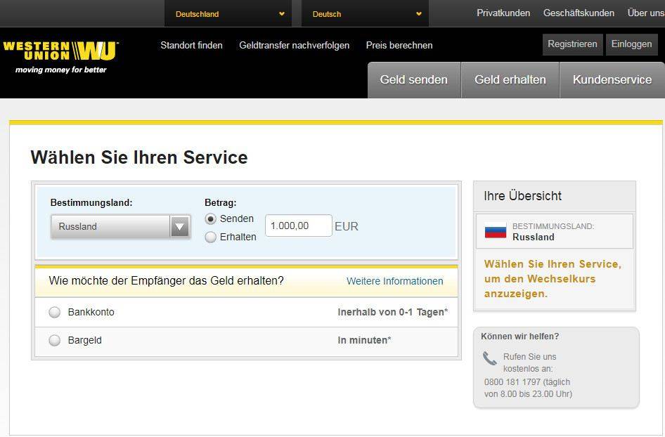 Осуществить перевод денег с помощью системы Вестерн Юнион из Germany в Российскую Федерацию можно несколькими способами: