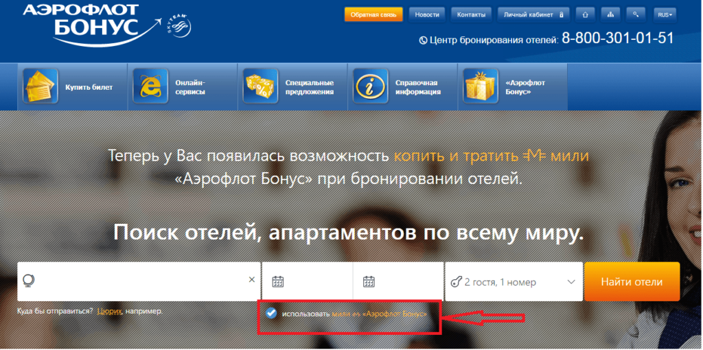 - зайти на сайт Аэрофлот в раздел бонусной программы;
