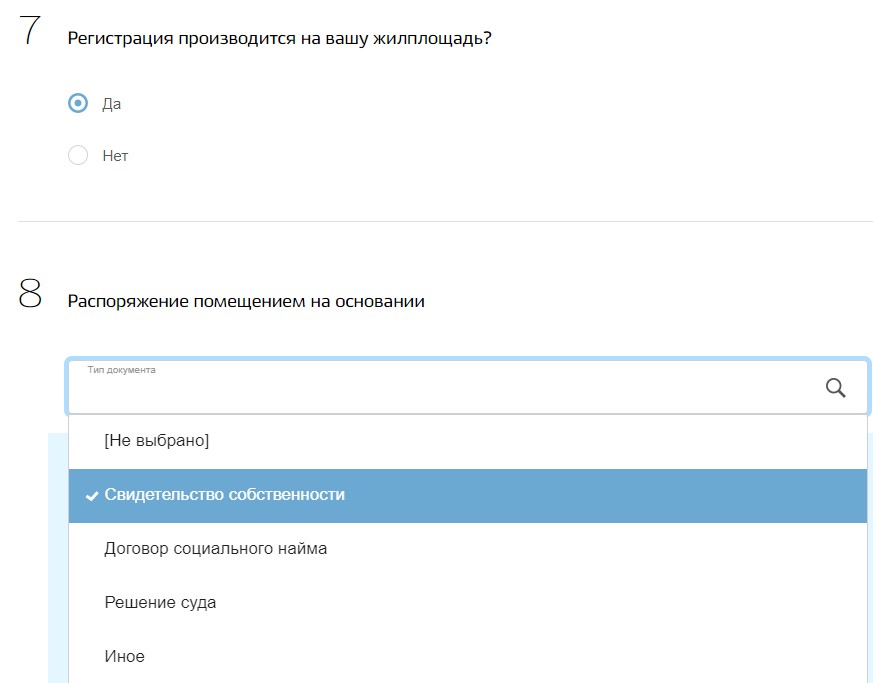 Чтобы создать заявку, нужно использовать информацию из паспорта и документы, подтверждающими права на регистрацию на определенной площади. Достаточно выписки из ЕГРН, договора аренды, решения суда.