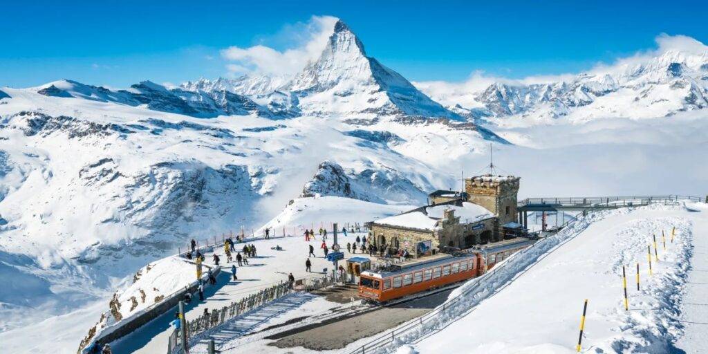 Горнолыжный курорт Церматт лучше всего подходит для любования видом на культовую достопримечательность – Маттерхорн – вершина в Пеннинских Альпах высотой 4 478 метров над уровнем моря.