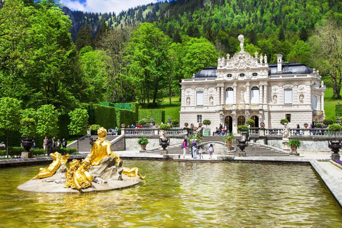Еще одно детище Людвига II. Замок расположен всего в 20 км от замка Нойшванштайн. Здесь можно полюбоваться не только архитектурным видом здания, но и внутренним убранством, выполненным в стиле барокко. Интерьеры поражают своим богатством. В их создании приложил руку известный европейский художник Ангело Квадлио. В замке есть еще одна достопримечательность, которую не встретишь нигде. Это грот Венеры – искусственная пещера высотой более 10 метром, с искусственным озером и небольшим островком в центре. В этом месте ставились сцены из опер Вагнера, а также устраивались театральные представления.